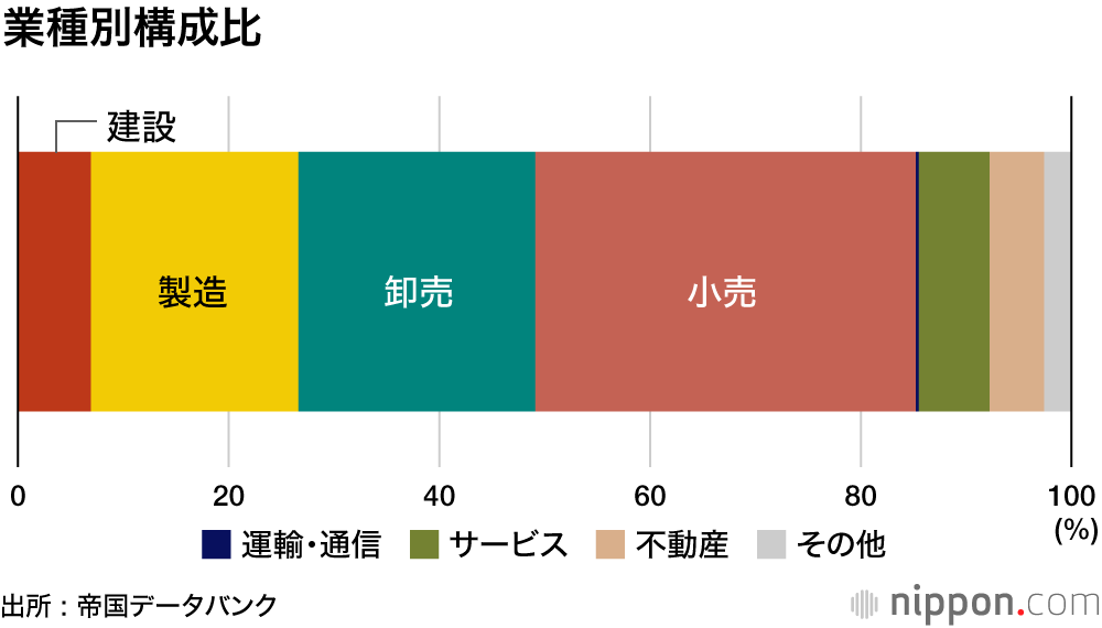 業種別にみると、2019年度で最も多かったのは「小売」の209件で、全体の36.1%を占めた。業種細分類別では「酒小売」が26件で最多となるなど、上位5業種のうち4つが小売業だった。古くから地域に根付いて商売をしてきた「近所の酒屋さん」「町の洋品店」などが、次世代に引き継ぐことを諦め、黒字経営のまま店を閉じるケースも少なくないようだ。